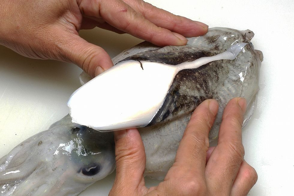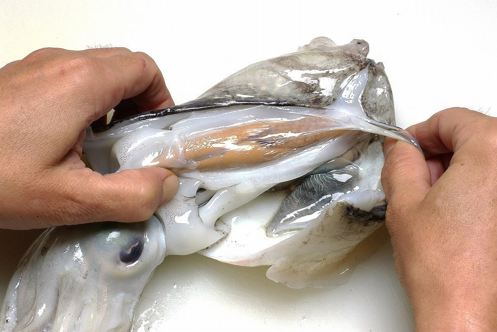 • 몸통 안쪽의 투명한 갑(뼈) 제거