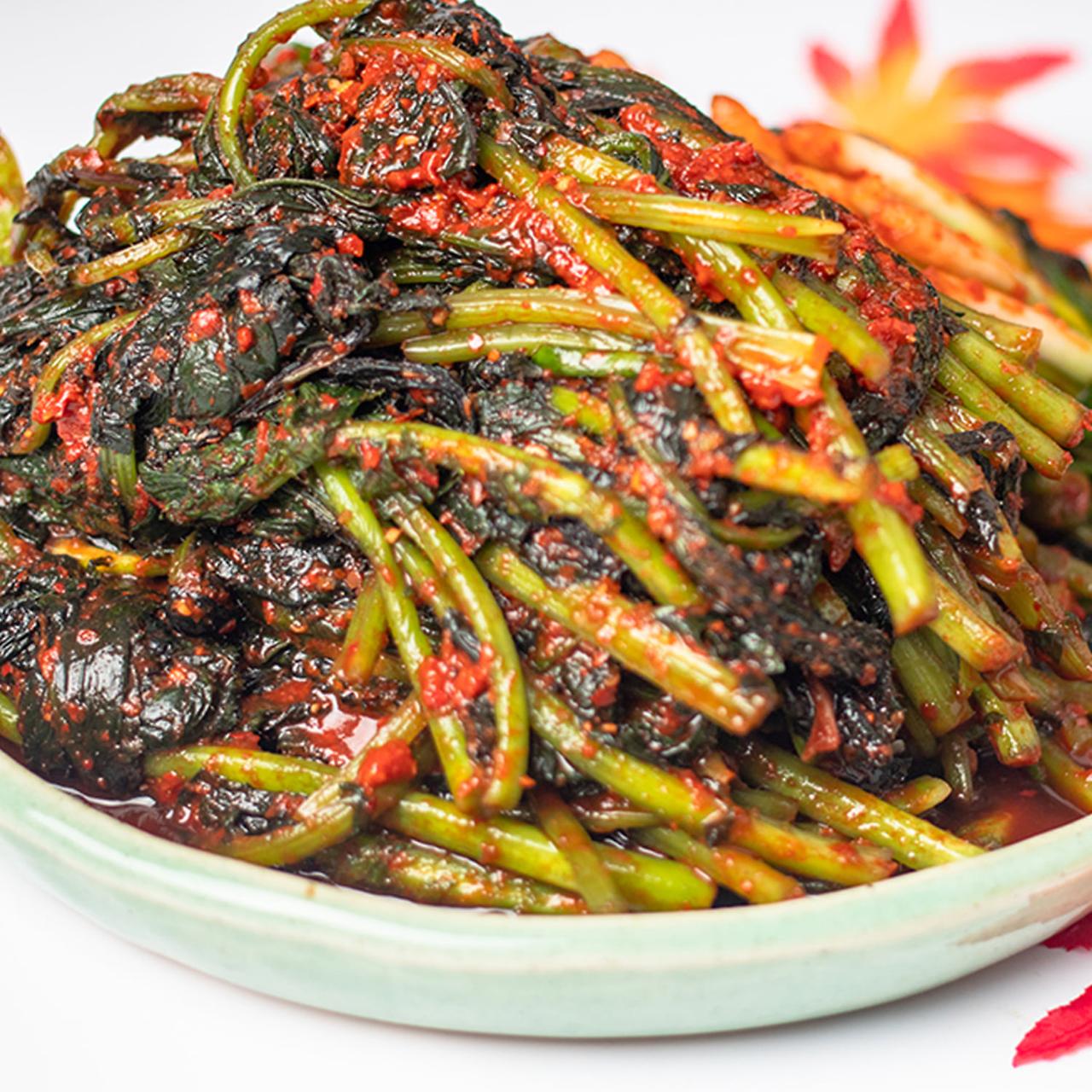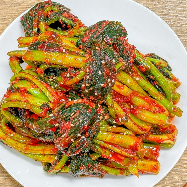 갓김치는 너무 세게 버무르면 잎이 상하므로 부드럽게 양념을 묻혀야 합니다.