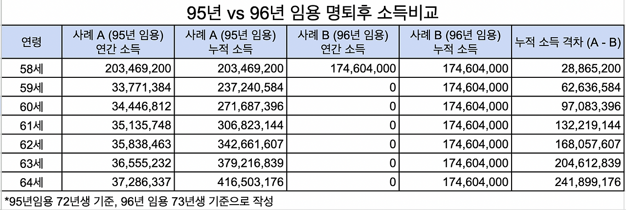- 적용 대상: 일반퇴직, 정년퇴직, 명예퇴직