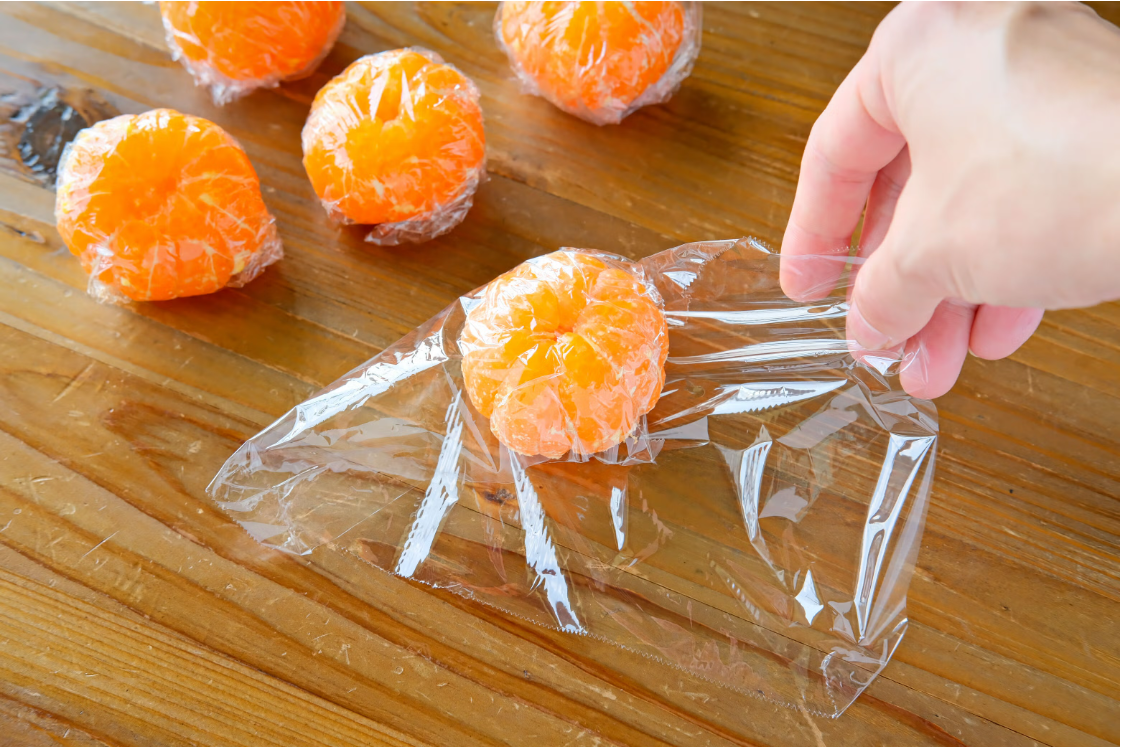- 껍질을 벗긴 귤을 한 개씩 랩 포장