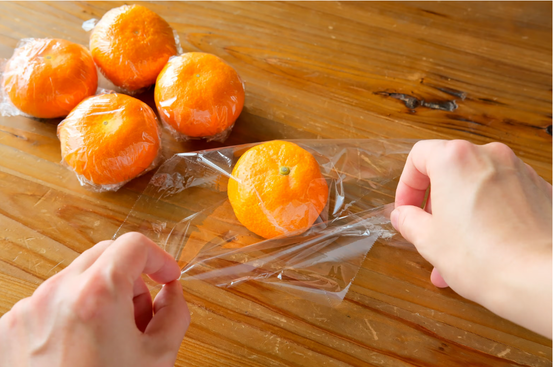 - 귤을 개별 포장용 랩으로 감싸 수분 증발 차단