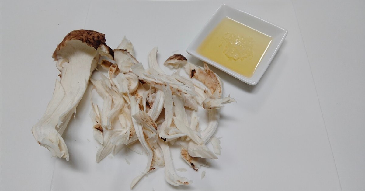 - 손질한 송이버섯을 길게 세로로 썹니다.