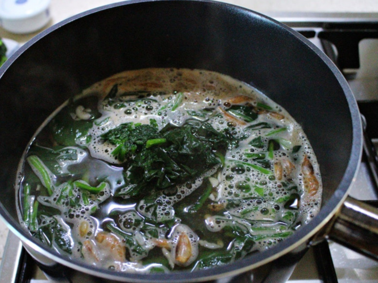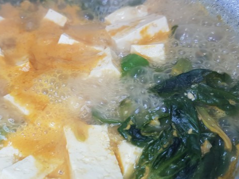 - 시금치를 넣고 2~3분간 끓이기