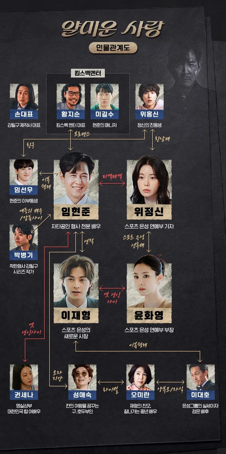 - 이재형 ↔ 윤화영: 과거 연인이자 사업 파트너로, 서로의 야망과 감정이 교차하는 복합적 관계.