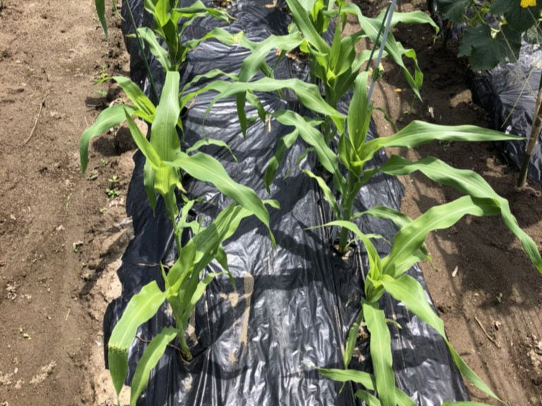 옥수수는 바람에 의해 수분이 이루어지는 풍매화 작물이기 때문에 최소 3줄 이상 집단 재배를 해야 수정률이 높아집니다. 단일 줄 재배는 수확량 감소로 이어질 수 있습니다.