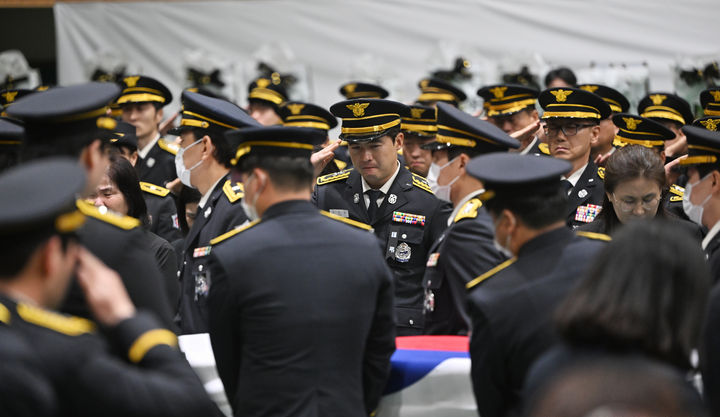 특히 영정 앞에는 고인들이 생전에 착용했던 정복과 정모가 놓였으며, 1계급 특진 임명장과 훈장이 함께 배치되어 그들의 공적을 상징적으로 보여주었습니다.