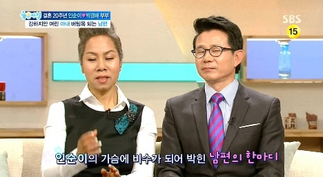방송 프로그램에서 공개된 일상 장면에서는 남편이 집안일을 챙기거나 아내의 건강을 챙기는 모습도 소개되었습니다. 이러한 모습은 많은 시청자들에게 인상적인 장면으로 남았으며, 오랜 결혼 생활을 유지하는 부부의 현실적인 모습을 보여주었다는 평가도 있습니다.