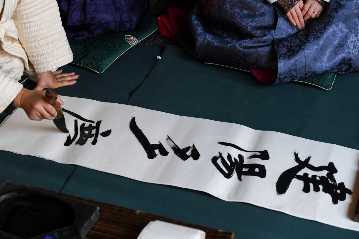 이때 ‘입춘대길’과 ‘건양다경’을 좌우로 나누어 붙이는 형식이 전통적인 대련 형태입니다. 공간 여건상 한 장만 붙이는 경우에도 중앙 배치가 무난합니다.