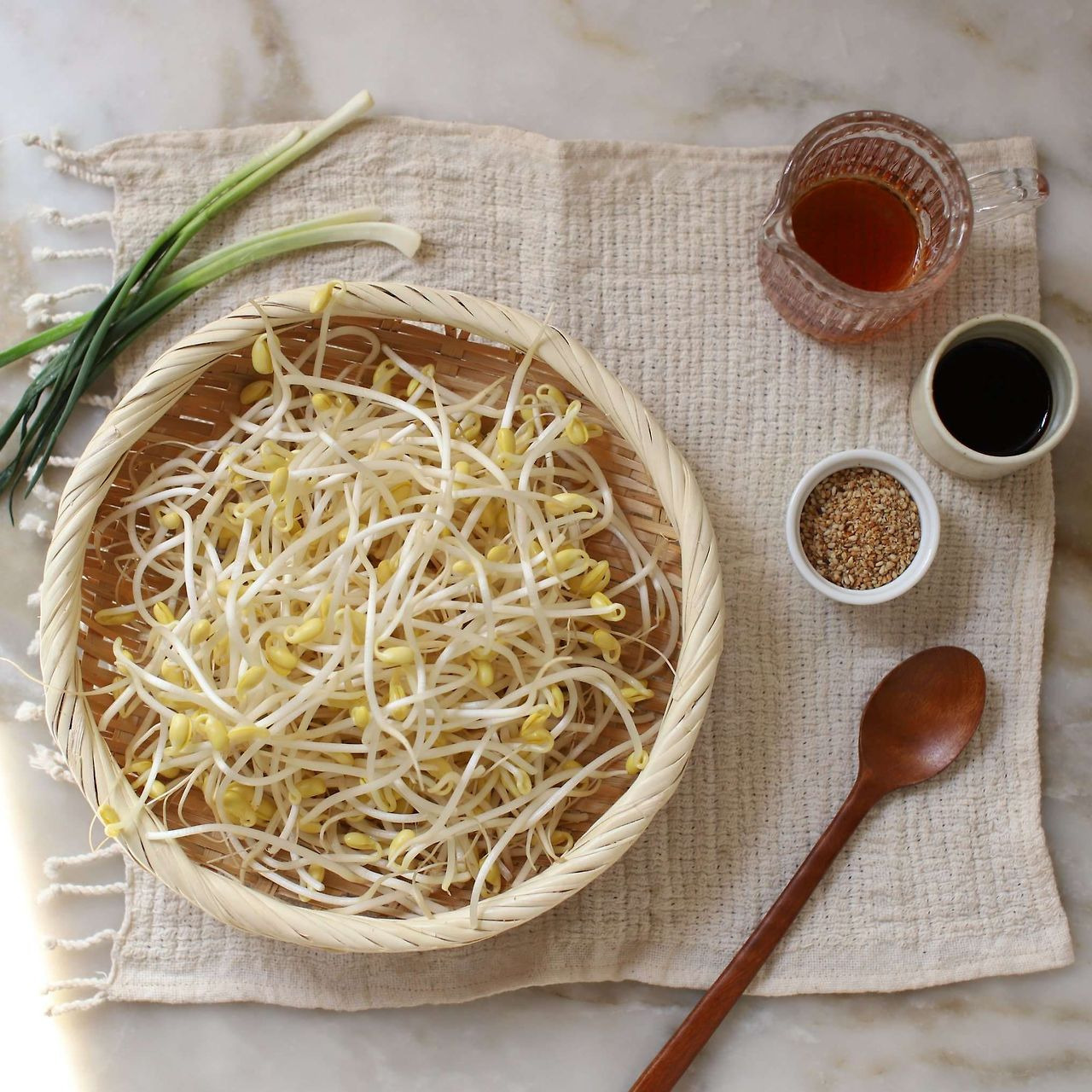 - 콩나물을 깨끗이 씻어 준비합니다.